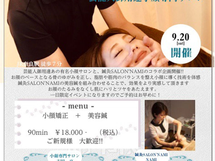 . . . . ....必見\\\└('ω')┘//// 2020 9/20 (日) 小顔専門サロン × 鍼灸SALONNAMI 1日限定コラボイベントします!! 小顔矯正 + 美容鍼 90min 完全予約制になります😶 芸能人御用達のあの小顔専門サロンの専門が...